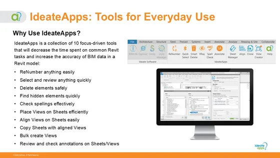 Ideate Software for Revit is a powerful suite of productivity tools that extends the capabilities of Autodesk Revit®. Built for architects, engineers, and other BIM managers, Ideate Software helps project teams save time, improve accuracy, and manage their Revit data with confidence.