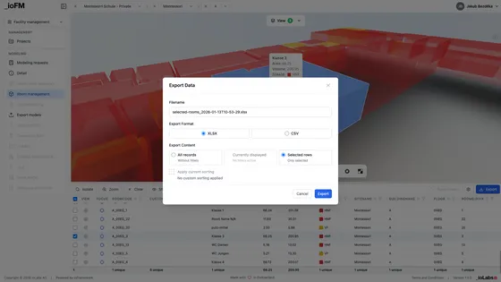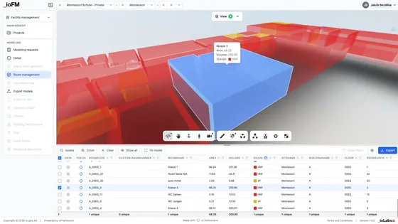 2. ioFM Web App: In our ioFM web app, you can easily visualize these models and use them for everyday FM tasks. With the cloud-based web app, you get browser access to core workflows like asset placement and issue reporting, plus a live Space & Area overview across rooms, floors, and buildings with oneclick CSV exports. ioFM integrates with Autodesk Construction Cloud (ACC) and your GIS so data stays in sync.
