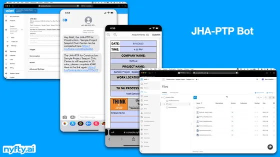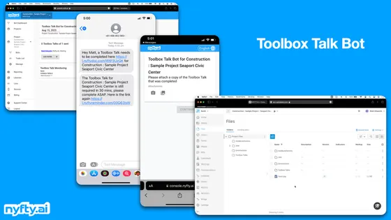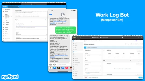 We automate field processes, i.e. getting people to comply with processes in your ACC account, like making sure Worklogs, JHAs, Toolbox Talks, etc are completed and saved to ACC. We use text messages to reach out to people, get them to complete the process, and then we save it back to Autodesk®.