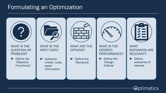Optimizer automates water system optimization, analyzing assets and objectives to produce cost-effective solutions. Balancing multiple factors, it saves time and costs, yielding 10-30% savings compared to manual methods, enabling efficient community service.