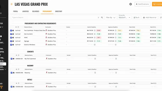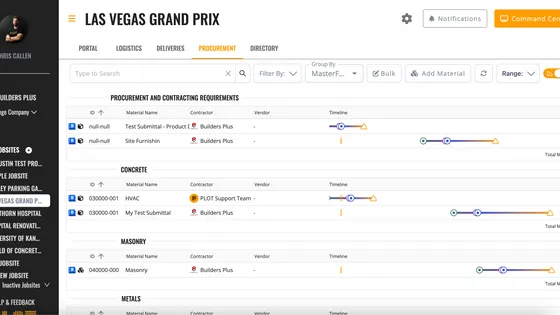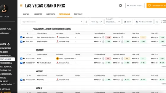 PLOT is a Jobsite Coordination software built for Procurement Scheduling and Delivery Logistics. Procurement tool integrates with your Submittals and Schedule to ensure material is Submitted, Approved, Ordered, and Received on Site on time.