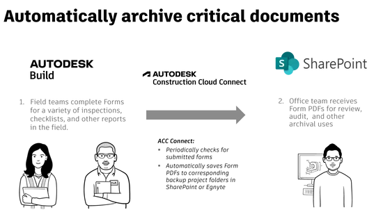 Automatically move documents and drawings from cloud storage folders to corresponding Autodesk Build & Autodesk Docs projects & folders.