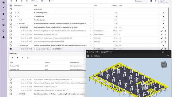 Whether you're working in 2D or 3D, Sterling enables accurate take-off from the models and drawings you already store in Autodesk Docs. Once you've built your estimate in Sterling, push the output directly into ACC Cost, complete with Budget Codes and Budgets.