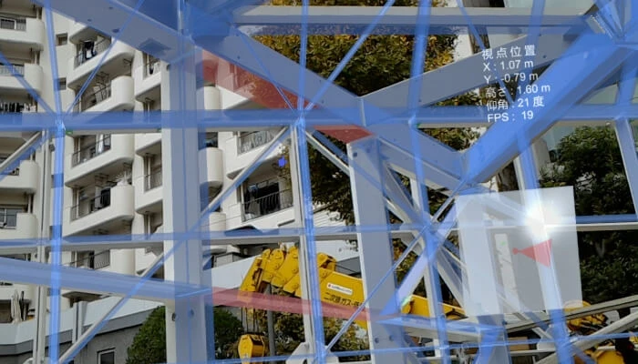 パネルを躯体へ取り付ける際には、その施工性の向上にMR技術が効果を発揮した。パネルに記載されたQRコードを読み取ると、作業者が装着したHoloLens上に個々のパネルの設置位置や施工ガイドが表示されるため、上下を間違えることなく迅速な取り付けが可能。またQRコードをのぞき込むことで作業開始のログが取れるため、それが進捗管理にも活用された。
