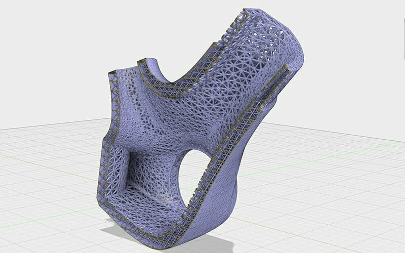 そんな折、航空宇宙産業関係の会社のアディティブマニュファクチャリング事業部の白書で、そうした構造を採用した航空機のドアヒンジがあることを知り、その技術者から使用したテクノロジーに関する情報を得ることができた。そのデザインに使用されたAutodesk Within (現在は Netfabbの一部) は、入力された3次元モデルに対して、3Dプリントした際の部品重量を削減できる、人間の骨のような中空格子 (ラティス) 構造を動的に生成可能なソフトウェアだ。