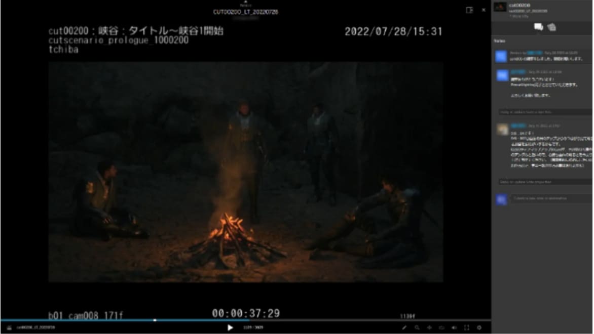 “’Flow Production Tracking 도입을 위한 장벽을 어떻게 극복할 것인가?’ 우선 우리는 이 문제를 해결해야 했습니다.” 타케오 스즈키(시네마틱 매니저)는 배경이나 캐릭터와 같은 에셋 제작을 관리하는 데 Flow Production Tracking를 이미 사용하고 있었지만 아직 컷씬 제작을 관리하는 데는 사용해본 적이 없다고 말합니다. FF16에서는 Flow Production Tracking를 사용하여 컷씬 제작의 효율성도 향상하고 싶었습니다. 하지만 도입 당시 이타로 이와부치(수석 시네마틱 테크니컬 아티스트)는 세부적인 플로우를 구축하는 것뿐만 아니라 스태프의 이해를 얻는 것도 중요하다고 생각했습니다.