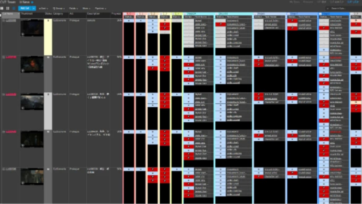 Flow Production Tracking는 할리우드는 물론 일본의 다른 애니메이션 및 영상 제작 현장에서도 필수적인 도구가 되었습니다. 최근 몇 년 동안 게임 개발 분야에서도 사용량이 증가하고 있습니다. 이와부치는 게임 개발 분야에서 Flow Production Tracking를 활용한 것에 대해 다음과 같이 언급했습니다. "영상 제작과 게임 개발에서 컷씬 제작을 위한 프로세스 관리는 비슷해 보일 수 있지만 몇 가지 차이점이 있습니다. 게임 개발의 경우 시나리오에서 사운드까지 광범위한 프로세스와 섹션들을 작업하면서 영상 제작에 비해 더 폭넓은 과정을 밀접하게 커뮤니케이션합니다. 우리는 이것을 '단계별 시스템'이라고 부르며, 게임 개발 프로세스에 따라 전체적인 제작 흐름에 맞춰 작업을 관리하기 위해 Flow Production Tracking를 사용하는 것을 고려했습니다."