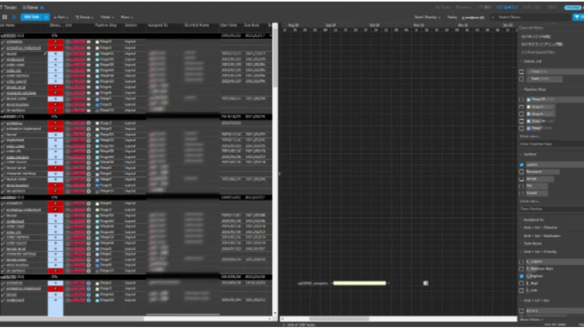 이와부치의 설명을 좀 더 자세히 살펴보자면, 영상 제작의 경우 포스트 프로덕션이라는 단계에서 사운드가 추가되는 경우가 많습니다. 게임 개발의 경우 개발 중에 오디오를 재생하면서 움직임과 표정을 일치시키는 것이 필요합니다. 오디오 녹음의 진행과 오디오 데이터의 정보가 애니메이션 편집 작업과 연결되는 것이 바람직합니다. Flow Production Tracking는 회사에서 "단계별 시스템"이라고 부르는 스케줄링 기능을 통해 이러한 흐름을 유연하게 처리합니다. "보시다시피 영상 제작과 게임 제작의 흐름에는 꽤 많은 차이가 있습니다. 하지만 이러한 차이점을 수용하고 어떤 워크플로우에도 대응할 수 있는 유연성이 Flow Production Tracking가 매력적인 이유라고 생각합니다."라고 이와부치는 말합니다.
