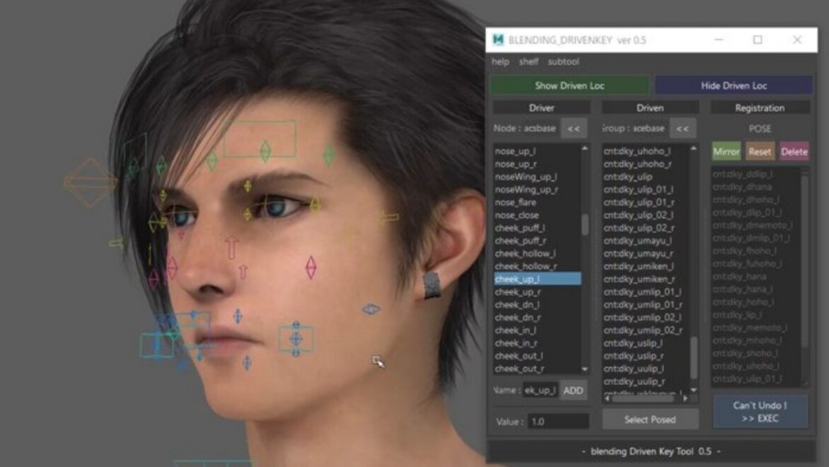 SQUARE ENIX 팀은 Maya에서 FACS를 기반으로 캐릭터의 얼굴 표정을 제어할 수 있는 도구를 개발했습니다.