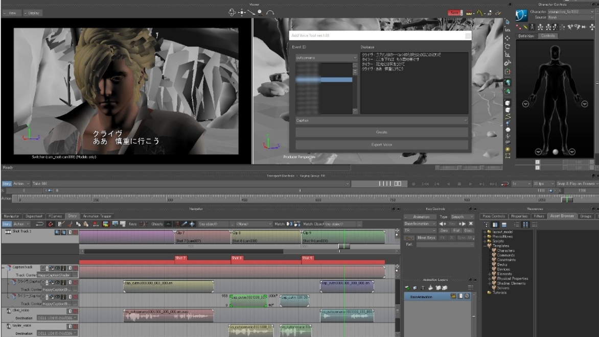MotionBuilder는 시간 소모가 많았던 음성 타이밍 조정을 도와줍니다. 예전에는 MotionBuilder에서 음성을 배치한 후, Premiere Pro에서 검수를 위해 음성을 다시 정렬하고, 마지막으로 게임 엔진에 전송할 때 음성을 다시 인식해야 했습니다. 이 과정은 번거롭고 시간이 많이 걸리는 작업이었습니다. 그러나 Sakamoto 씨는 이 과정을 효율적으로 만들기 위해 ‘Add Voice’라는 기능을 개발했습니다. 이 기능을 통해 MotionBuilder의 음성 배치 데이터를 내보내 Premiere Pro에서 검수용 비디오를 제작할 수 있었고, 동일한 데이터를 게임 엔진에 정확히 가져올 수 있었습니다. 덕분에 이전에 세 번이나 반복해야 했던 작업을 한 번에 처리할 수 있어 팀이 반복 작업에 시간을 낭비하지 않고 스토리의 품질에 집중할 수 있었습니다.