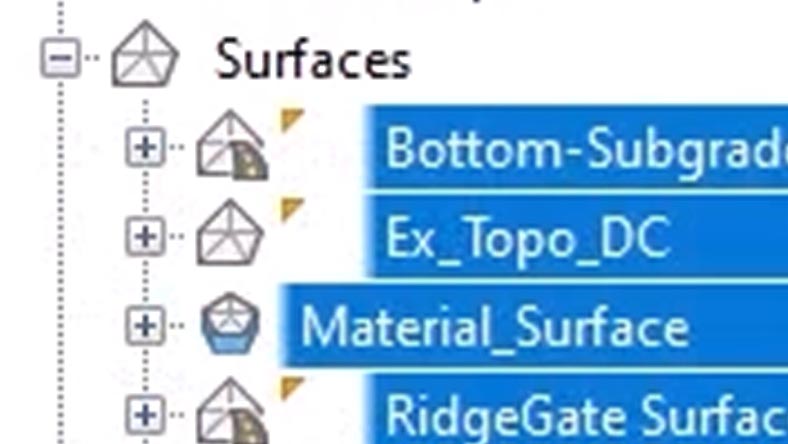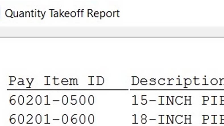 Use materials information to create reports for volumes along an alignment, comparing design and existing ground surfaces, and quantity takeoff.