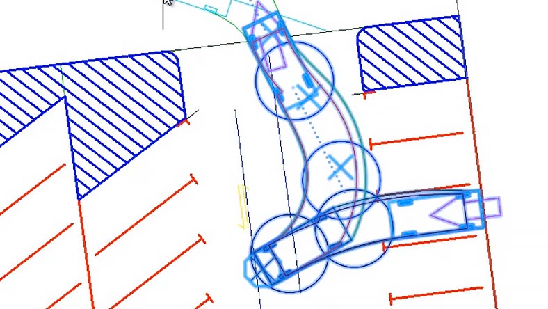 Use swept path analysis to speed planning and evaluate safety standards compliance. Animate vehicle paths with 2D or 3D animations using multiple camera angles.