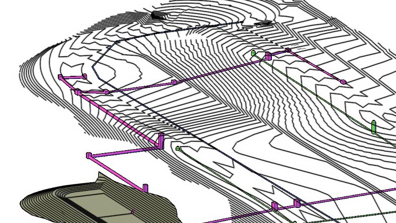 Lay out horizontal and vertical 3D design of pressure networks. Model deflected-curve pipe segments and use design and depth checks to meet project standards.