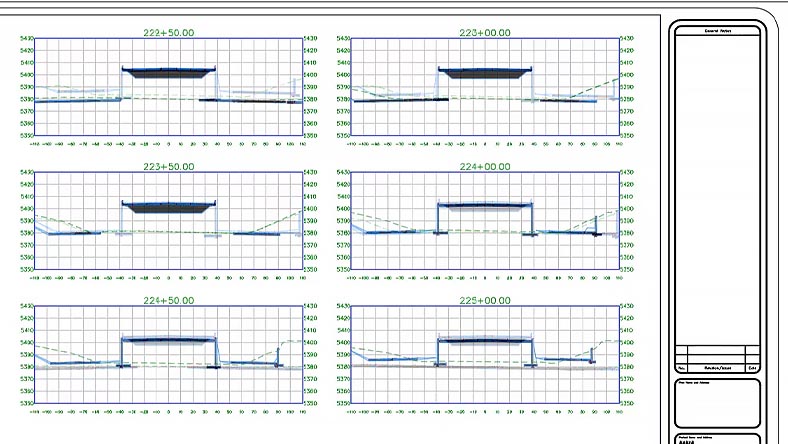 Create plan production sheets that automatically display station ranges of alignments and profiles that are based on predefined areas along an alignment.