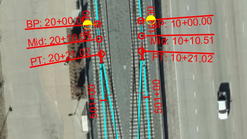 Use rail alignments to create rail lines with common stationing based on specified tolerances that adjust with changes to parent rail alignment geometry, profile, and cant.