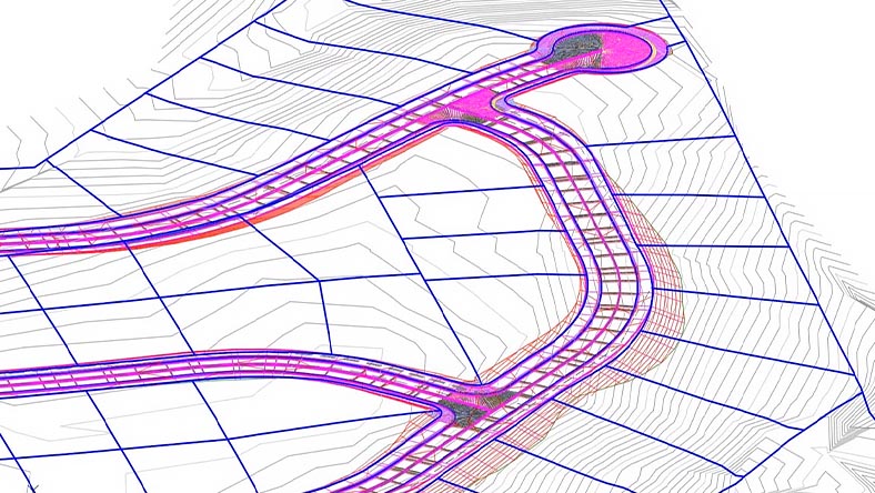 Create dynamic, flexible 3D models of road corridors. Simulate driving through the corridor and visually evaluate sight distance and influence analysis.