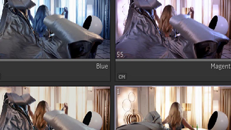 Save and recall color grading and FX work in a dedicated bin and reference comparison area.