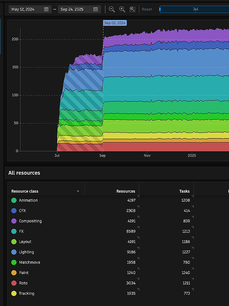 Track projects, shots, and assets across the pipeline, with clear visibility into team progress and resources from powerful reporting tools.