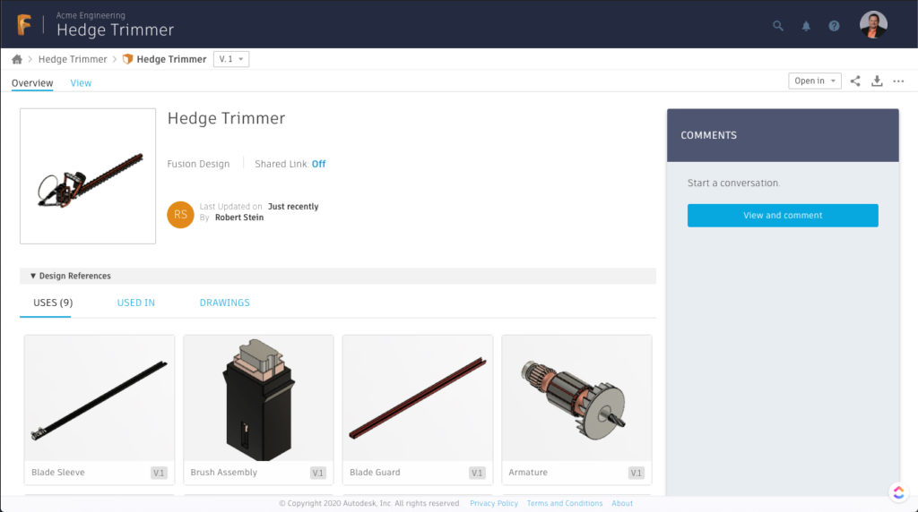 With the new overview tab you have easy access to all the same information in the previous item details page. This view provides you with easier access to design references such as Uses, Used In, and Drawings. With this update you now have easier more streamlined access to menu’s, and more real estate availble.