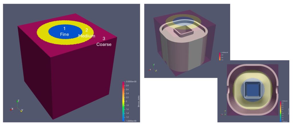Feature-aware meshing is implemented using discrete field information, which prescribes different coarsening levels throughout the volume.