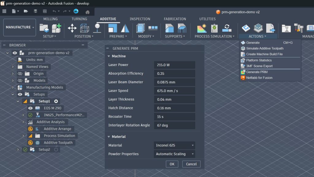 The second is PRM generation. It expands the range of additive manufacturing machines that can be simulated directly within Fusion.