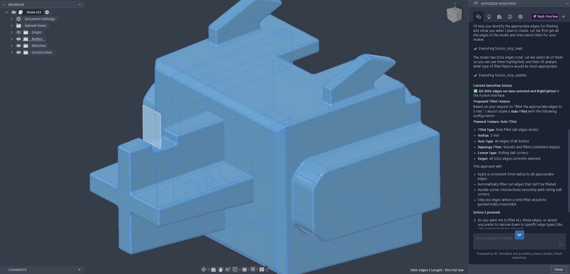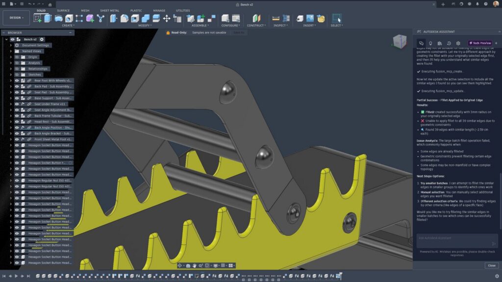 Why we’re doing this: If you’re wondering what this means for your work specifically, Autodesk Assistant isn’t here to replace engineering judgment. It’s built to remove friction: fewer repetitive clicks, fast answers, and guided execution of standard Fusion operations inside your existing flow, while you stay in control of decisions and outcomes.