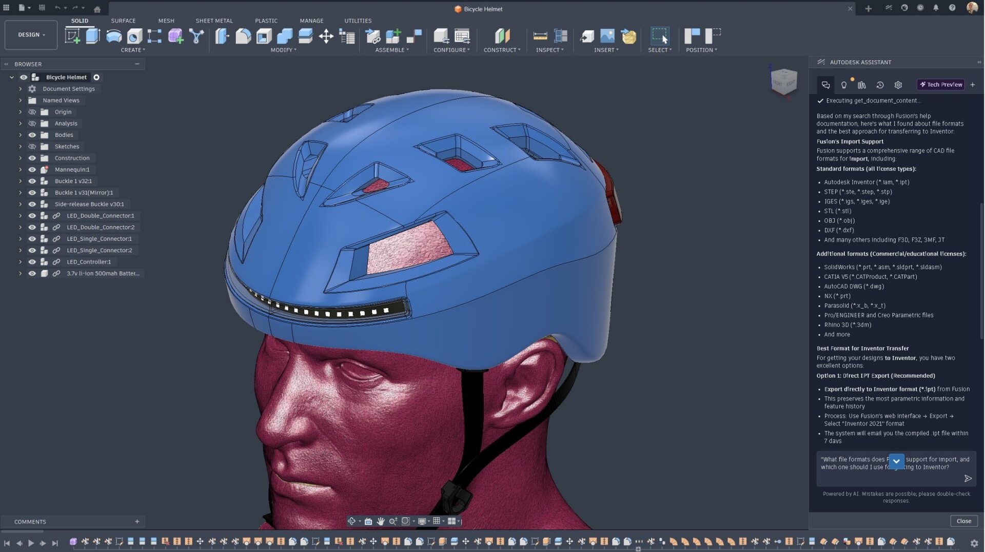 Assistant can also help with everything that goes on around the Fusion model: exports, formats, and sharing.