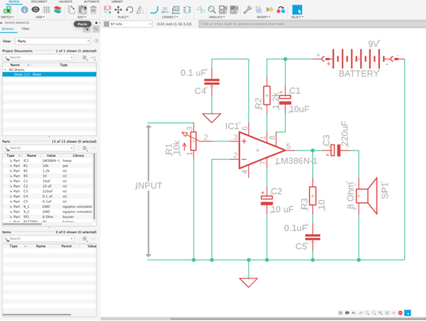 À vous de jouer. Utilisez Fusion 360 pour créer ce circuit et impressionnez vos amis et vos collègues avec vos nouvelles connaissances en matière de conception électronique. Vous n’utilisez pas encore Fusion 360 ? Téléchargez-le dès aujourd’hui.
