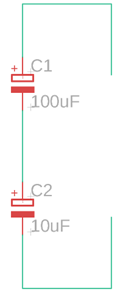 Cependant, supposons que les condensateurs soient montés en série. Dans ce cas, les valeurs de leurs capacités sont d’abord inversées, puis additionnées, et enfin inversées à nouveau, tout comme nous calculons la résistance des résistances en parallèle.