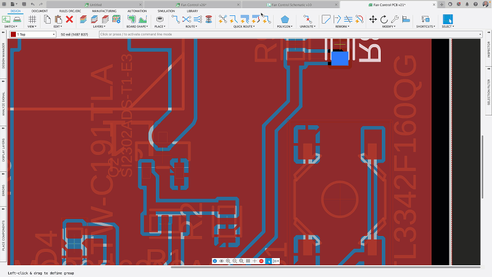One notable feature from EAGLE that seamlessly made its way into Fusion 360 electronics is the walkaround routing method. This manual routing feature leverages the power of live DRC (Design Rule Checking) to prevent the creation of shorts during component placement and signal routing. By intelligently considering the manufacturing settings defined in the design rules, the walkaround mode ensured that designers could route their PCBs while avoiding violations and maintaining the highest level of design integrity.