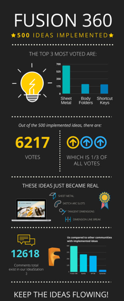 We take your suggestions very seriously as they help to shape Fusion 360, so please share your ideas and vote for new features / enhancements you would like to see. Here’s an update on where we’re at with submission: