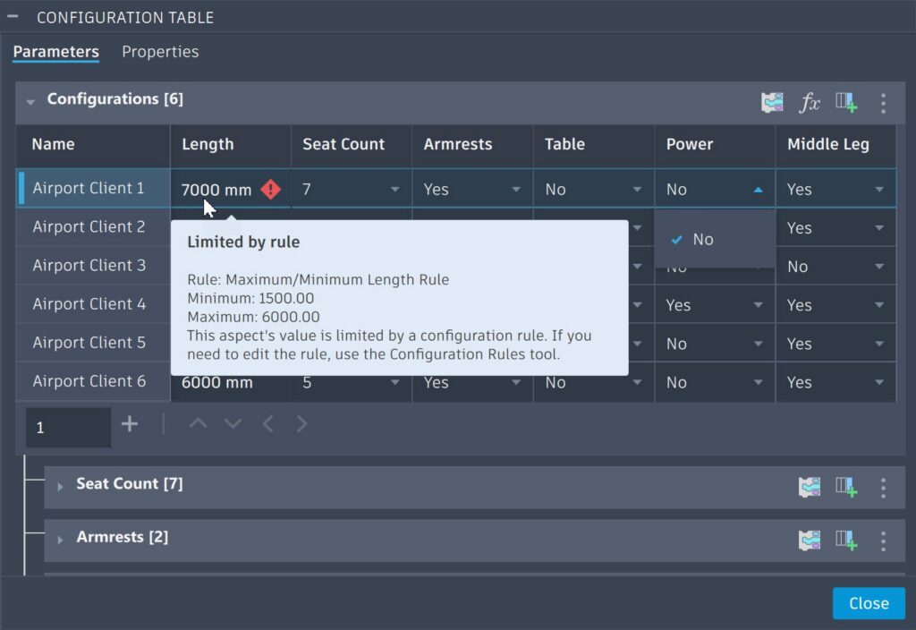 Fusion now includes configuration rules, letting you define logic that drives and constrains values in a configured design.