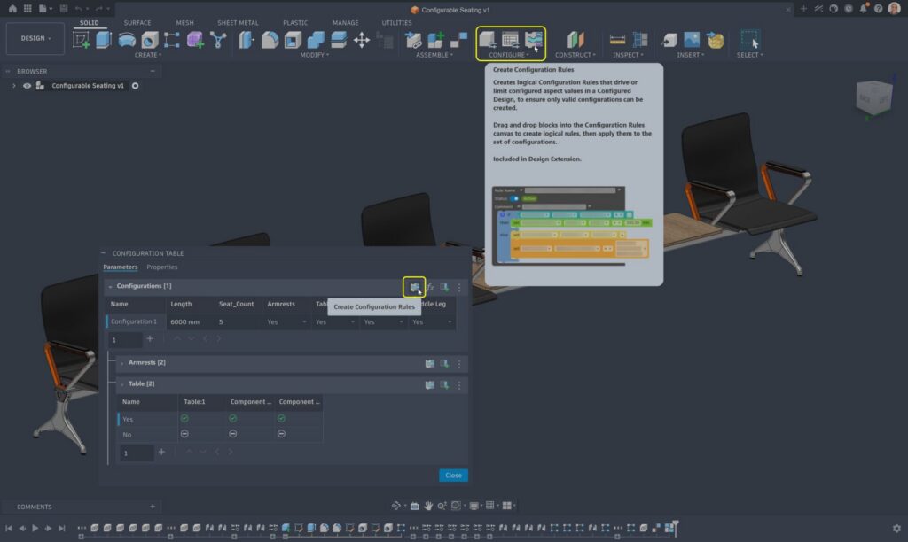 Configuration rules are available as part of Fusion for Design or the Fusion Design Extension.