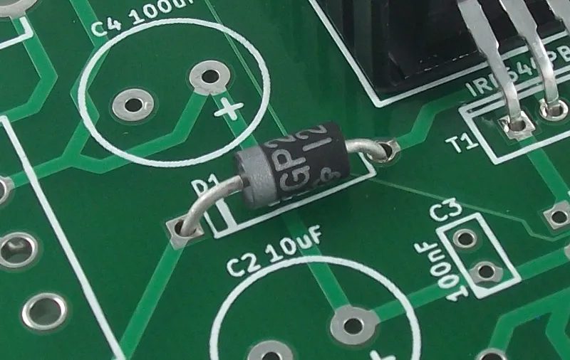 I lampioni e i cartelli stradali aiutano a mantenere l’ordine in un mondo pieno di automobilisti scatenati, controllando il flusso del traffico nel nostro labirinto di strade e autostrade. Su un circuito stampato, i lampioni e i cartelli sono come i diodi e il loro cugino, il LED. Il diodo controlla il flusso di elettricità su un PCB, consentendogli di andare solo in una direzione. Sicuramente avrai visto un LED: è proprio come un diodo, solo che si illumina quando viene attraversato dalla corrente.