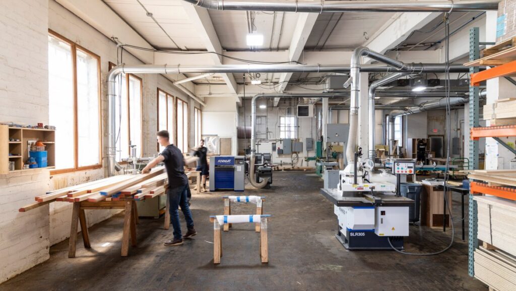 GANAS MFG 社は、建築用取り付け家具やオーダーメイド家具の製造をフルサービスで提供するスタートアップ企業で、木工や金属加工を専門とします。2015 年にデトロイトに設立された工場は約 15 人のスタッフによって運営され、他社にはない小回りの効く対応を強みとしています。