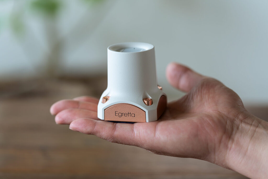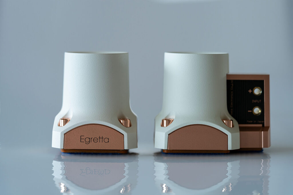 「自分が Egretta 製品のデザインに携わる前から、社内でブランドの立ち上げやマーケティングを主導してきたメンバーがいました。そのメンバーが、独自のタワー型スピーカーというデザインとアイデンティティを創ってきました。白鷺を意味する Egretta というブランド名も、白いタワー型のデザインを凛とした白鷺のシルエットに見立てたものです」