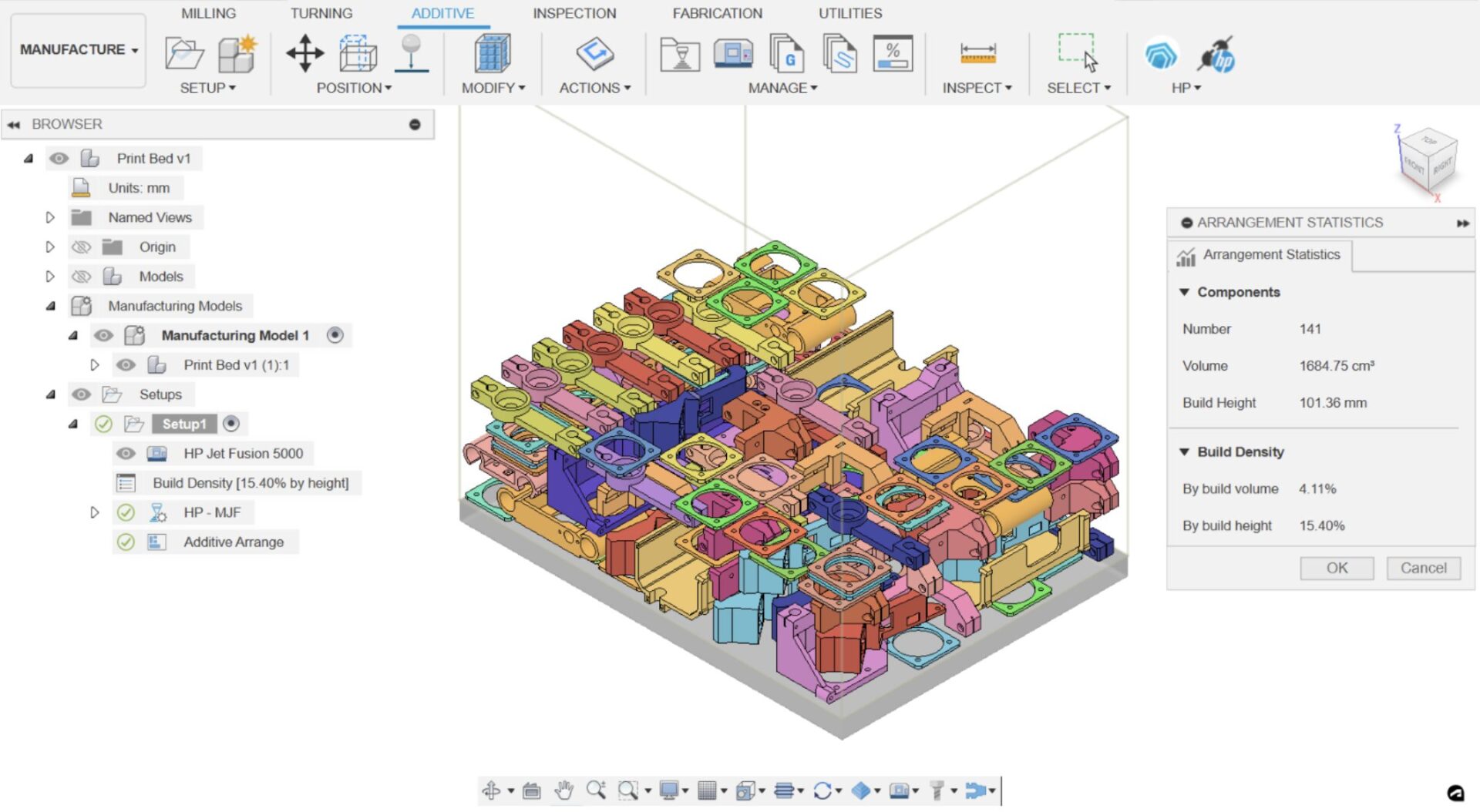 Additive Arrange is used to nest multiple components in the build volume of a 3D printer in as little space as possible, all while avoiding collisions. 2D packers are great for Additive processes that require support structures. 3D packers are used for self-supporting processes such as SLS and MJF. With this version we are releasing a new 3D arrangement type called Monte Carlo.