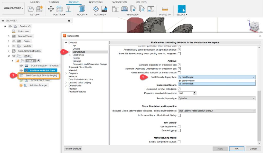 There is now a new preference within the Additive part of the in the Manufacture section that controls the additive arrangement statistic outcome allowing you to visualize the results by build volume or build height.