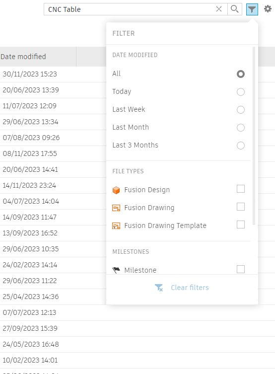 When navigating to files in projects, you now have the option to provide additional context to discover the files of interest, allowing you to find your files faster than ever! You can filter by time, or file type.