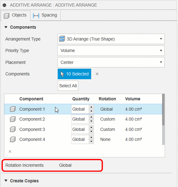 We updated the “Additive Arrange” dialog to display the custom rotation input per component below the component table. This makes it much easier to see what custom rotations have been set for each component.