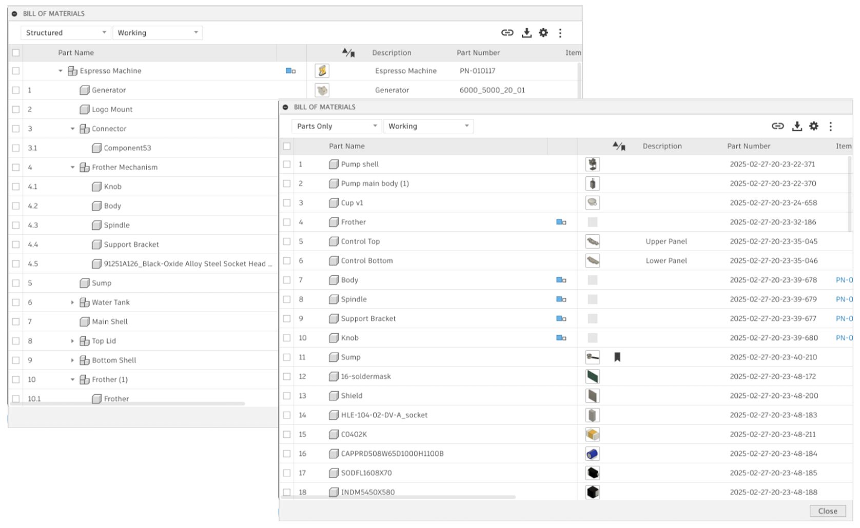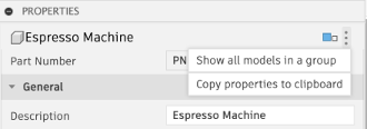 You can now easily open the list dialog box through the three-dot menu in the property panel header to view all the models that belong to your shared part number group.