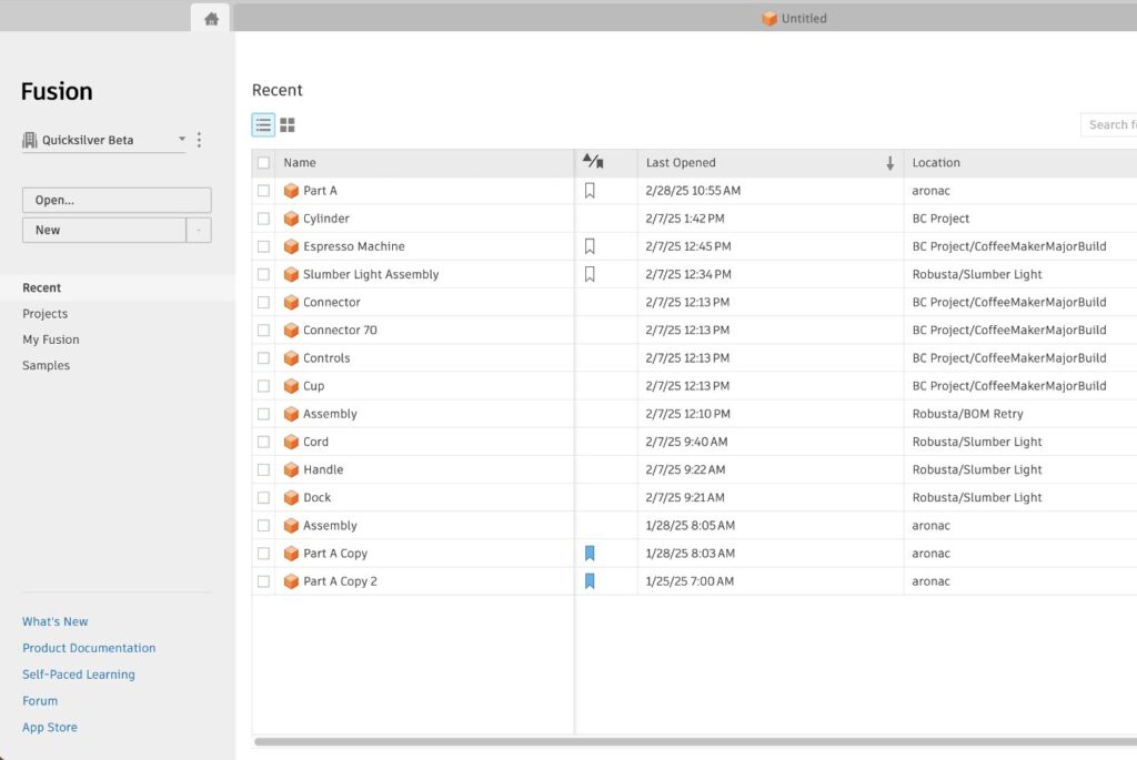 The Home Tab now shows more data at once, helping you quickly access your project data and Recents list. This density aligns with the rest of Fusion desktop so that you don’t have to adjust to different information densities in the same application.