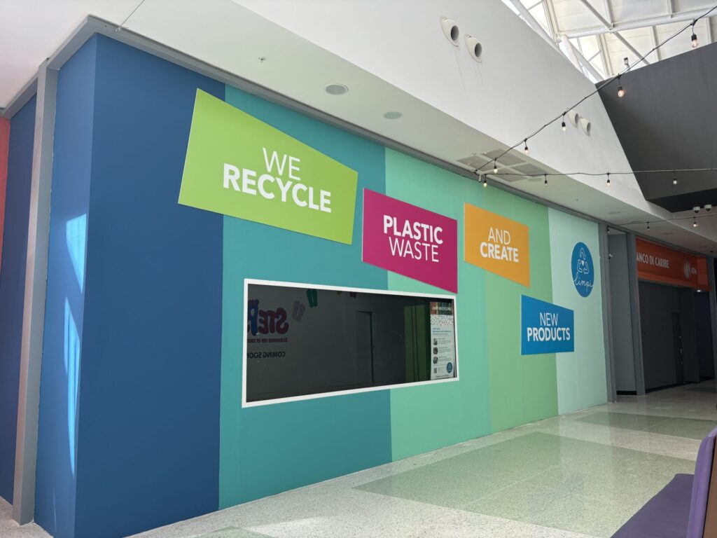 Limpi eventually outgrew its backyard workspace. Piles of shredded plastic and expanding machinery filled every corner until the team migrated to their new home inside Curaçao’s Sambil Mall. “Now we have a 500-square-meter facility in the mall, so people can see through the window and see exactly what we’re doing all day,” Lammering says.