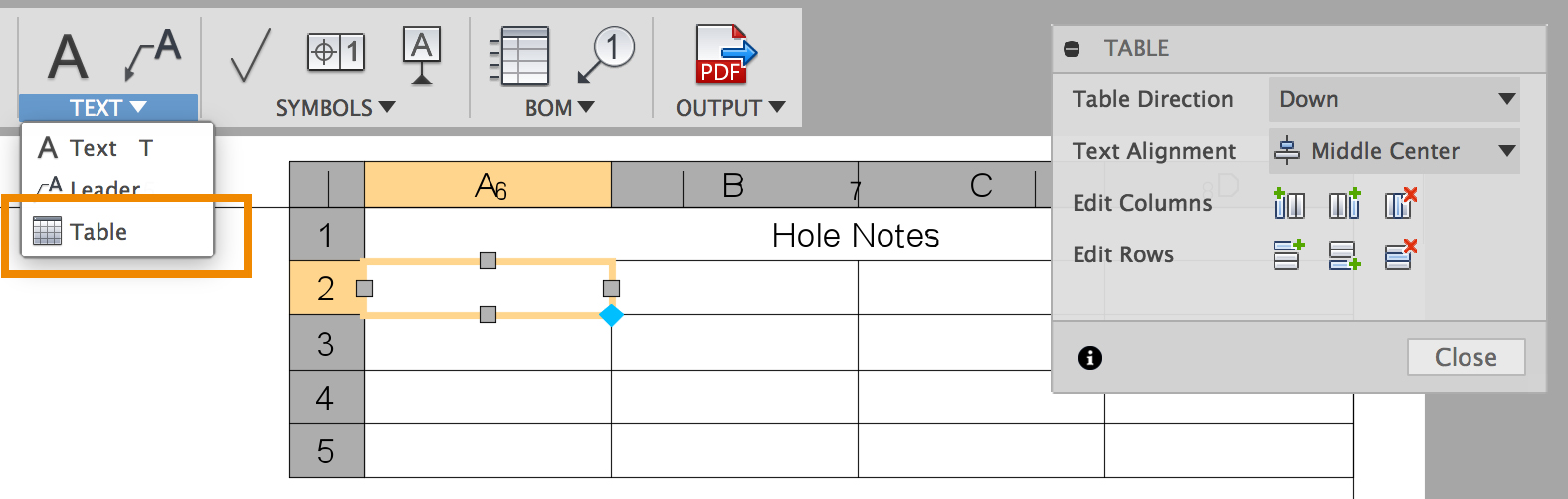 Good news! You can now also create custom tables in your drawing sheets! A Tables option now lives under the Text drop-down menu. When it’s active, hover over where the area you want the table to be and drop it on the sheet. Depending on the region you are hovering, it’ll automatically flip the title cell to follow typical drawing standards. If you prefer to keep the title cell to stay still, press SHIFT.