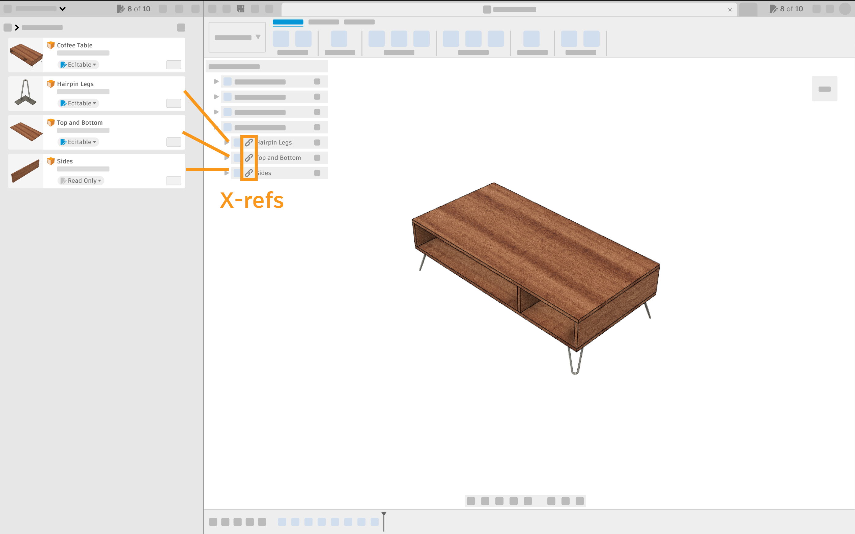 If you are working on a document that contains inserted documents as sub-assemblies, also known as X-refs, they all follow the same Read Only or Editable rules, just like any document does. You can still open the primary document, as well as all of its X-ref documents, regardless of whether they are Editable or Read Only.