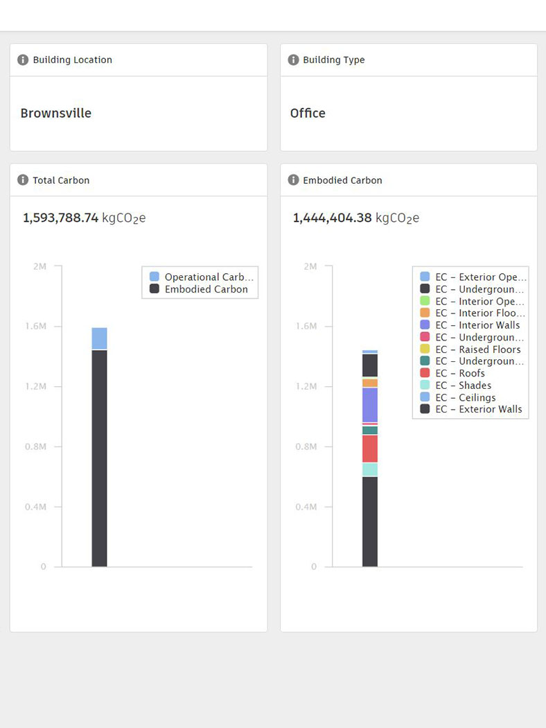 Flexible dashboards for evaluating embodied and operational carbon
