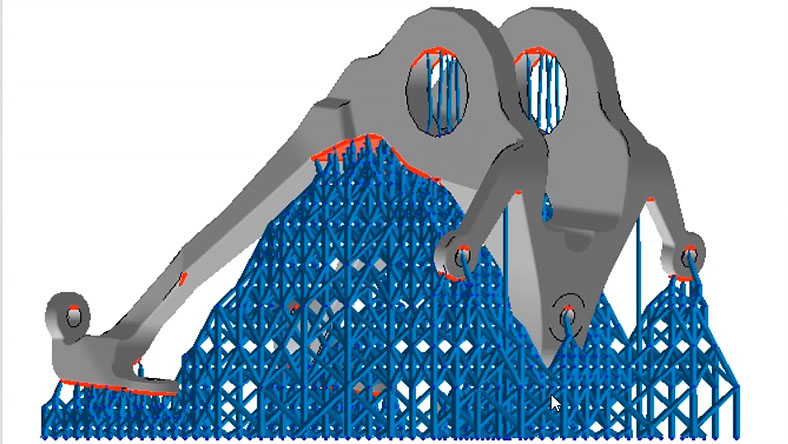 Netfabb simulates the delamination of the part from the region where the support structure on a component experienced failure.