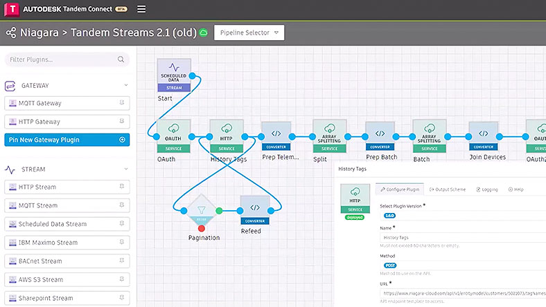 Autodesk Tandem Connect is used to integrate and stream data from building systems into a centralized digital twin, enabling better visibility, monitoring, and operational optimization.