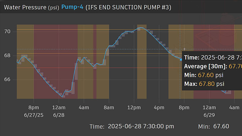 Create and visualize warning and alert indicators for stream parameters, with customizable high and low values that display yellow (warning) or red (alert) color-coding in charts.