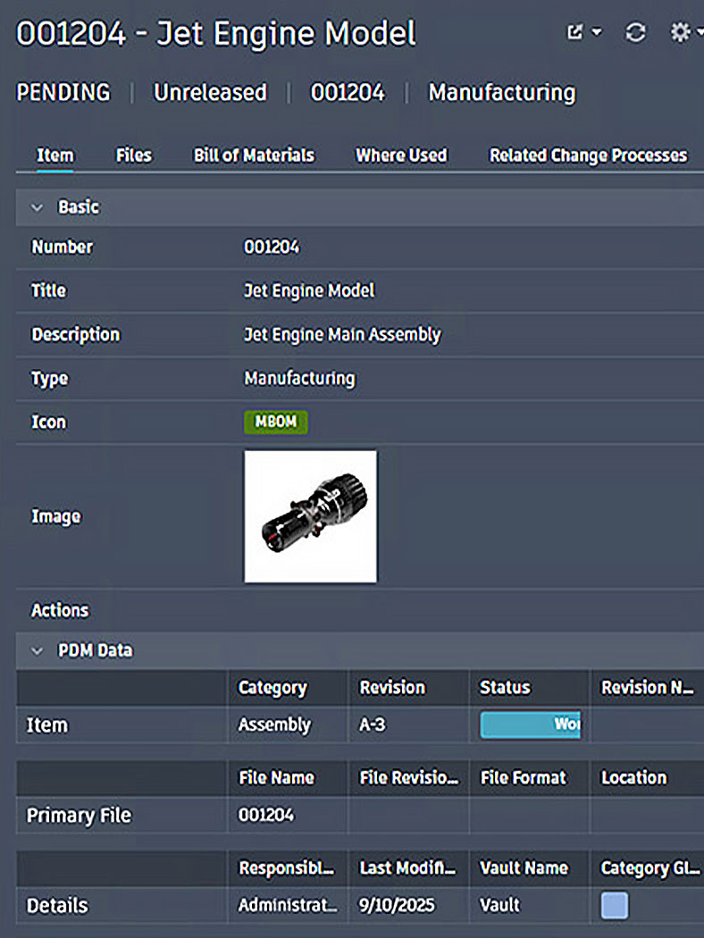 Configure and manage items and structured BOMs in a centralized system. Revision control ensures teams work with up-to-date information. Maintain comprehensive BOMs with information for purchasing, production, manufacturing, and more.
